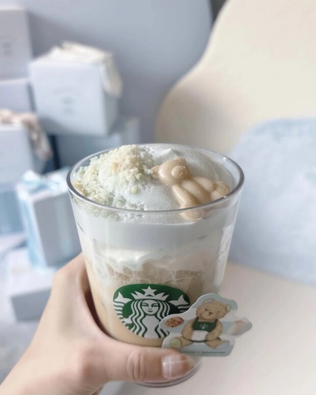 そんな芳醇なドリンクの上には、淡いブルーのムースとスポンジケーキクラム、かわいらしいくまさん型のチョコレートをトッピング。ジェラピケのもこもこアイテムを彷彿させるビジュアルです♡思わず飲むのをためらってしまいそうなほどキュートなドリンクを、ぜひ実際に飲んでみてくださいね。