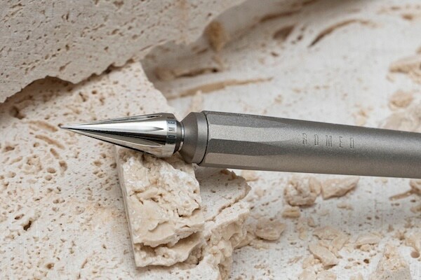 「ROMEO」は、その古典的な筆記具である「つけペン」を、航空宇宙産業や医療分野でも使われる64チタンを素材として再構築し「ROMEO イニチウム 0.5 チタン」を発売。「イニシャル(initial)」から始まりを意味する「イニチウム」と名付けた。