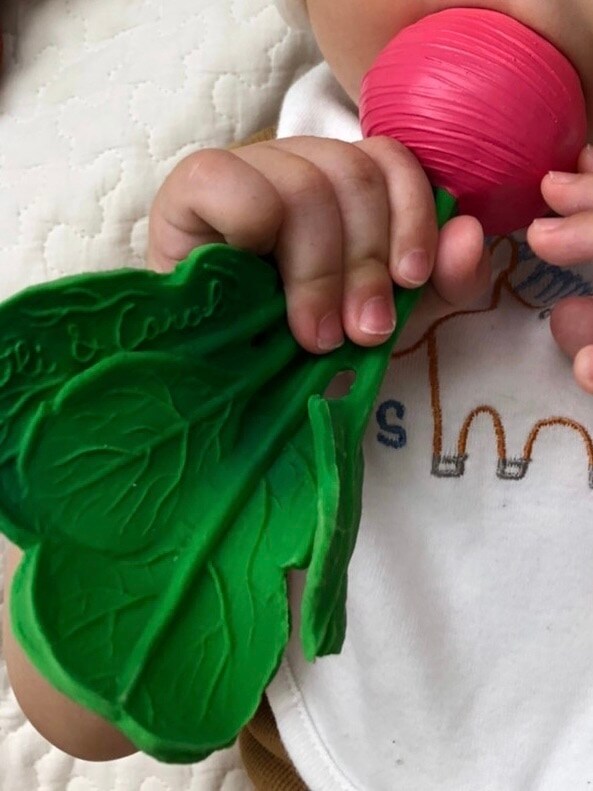 「nonnonnon kids&babyでセレクトしている、OLI&CAROLというスペインのブランドの天然ゴムTOY。穴のない一体成型で内部に水が入らないので、カビやバクテリアの発生を抑え、赤ちゃんが口に入れても安心・安全。 BPA、PVC、フタル酸、ニトロサミンフリーなのと、生物分解性で環境にも優しいサステイナブルなアイテムということを知り、 “将来自分の子どもたちが生きる地球を守る”という気持ちが強くなっている私にとって、高ポイントでした。 低月齢のときは歯固めとして、今はお風呂やおままごとなどで遊んでいます。長く使えるので、他の野菜や果物も追加で買っておけばよかったな」