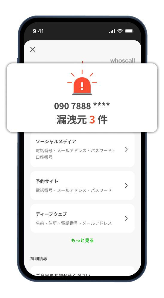 ユーザーの電話番号・メールアドレスに紐づく個人情報が、ダークウェブやSNSなどインターネット上に流出していないかや、違法に販売されたかどうかなど過去の流出記録を検出し、個人情報の漏洩を確認できる機能。