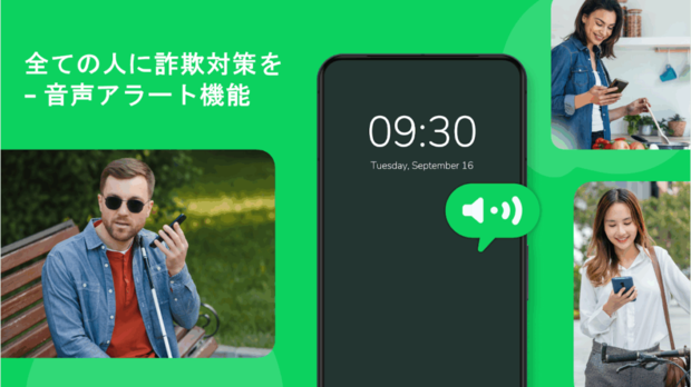 データベースを元に発信元を自動で識別し、犯罪に使われる恐れがあると検知した場合、着信画面に「詐欺電話」などと警告が出る。電話詐欺対策に有効。