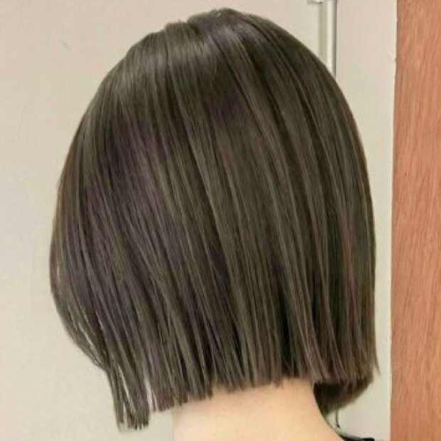 オリーブグレージュ×切りっぱなしボブ