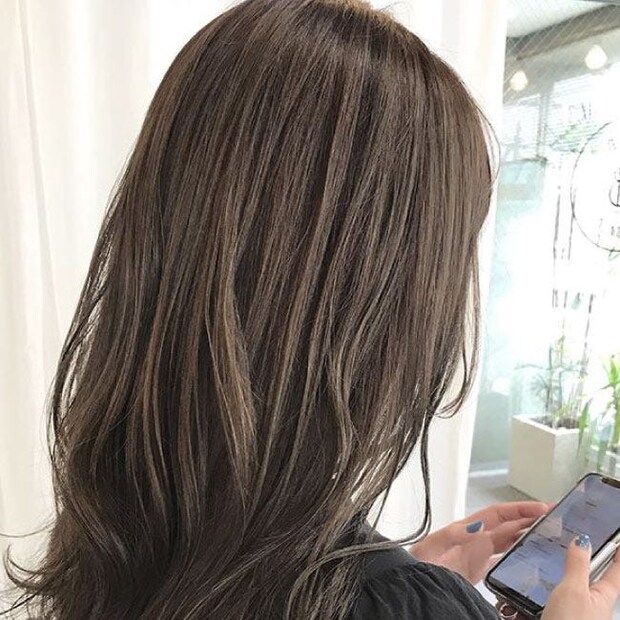 ローライトとは、ベースの髪色よりも暗い色を一部に入れるカラーリング方法。髪に立体感が出て引き締まった印象に近づく。髪を巻いて動きを出すと、よりメリハリのある仕上がりに。