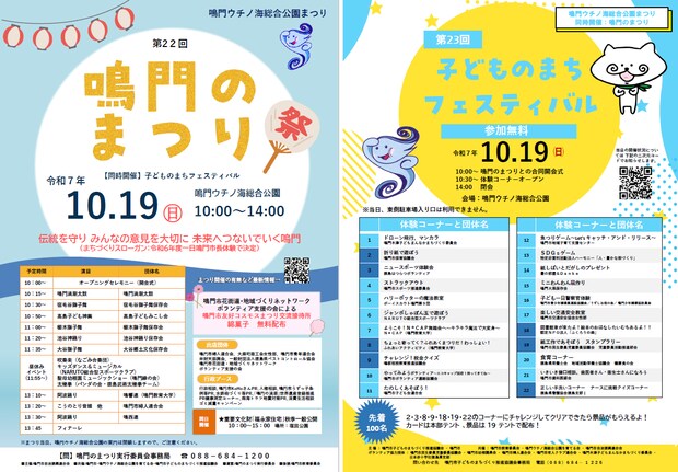 10月19日(日)は鳴門ウチノ海総合公園へ!「鳴門のまつり」と「子どものまちフェスティバル」同時開催