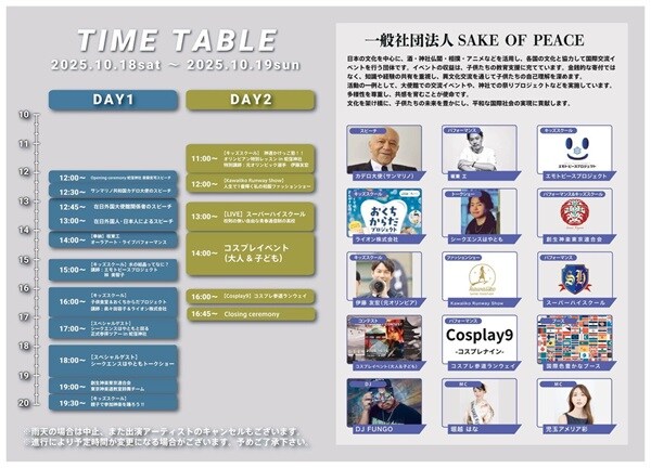 司会は2025 Miss SAKE 準グランプリの堀越はな氏と、バイリンガルタレントの児玉アメリア彩氏。DJの短冊ファンク氏が、独自の和とグルーヴを融合した音楽で境内の空間を彩る。