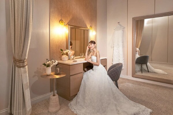 さらに、バンケットに隣接したプライベートなブライズルームも完備。中座時間を短縮し、ゲストとのかけがえのない時間をより長く過ごすことができる。