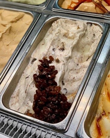 「ラムレーズン」は、ラム酒香るレーズンをミルクジェラートに。食べ終わった後も余韻に酔いしれる、大人な一品だ。