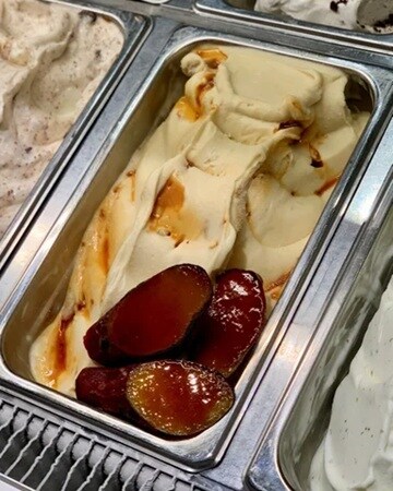 「大納言ミルク餅」は、ミルクジェラートに大納言とお餅を混ぜ込んだ、大福をイメージしたジェラート。