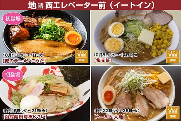 地階のイートインスペースでは、北海道のラーメンを週替わりで味わえるのもうれしいポイント。