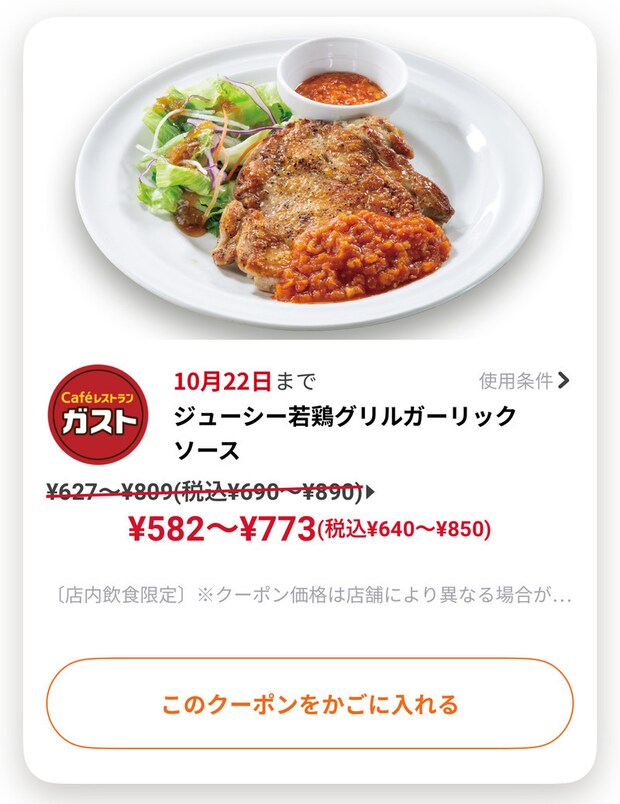 その他、ガストで10月22日(水)まで使えるクーポンを一部ご紹介!