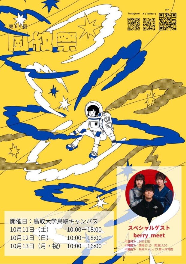 鳥取大学の秋を彩る「風紋祭」が、いよいよ2025年10月11日(土)から13日(月・祝)までの3日間開催されます。