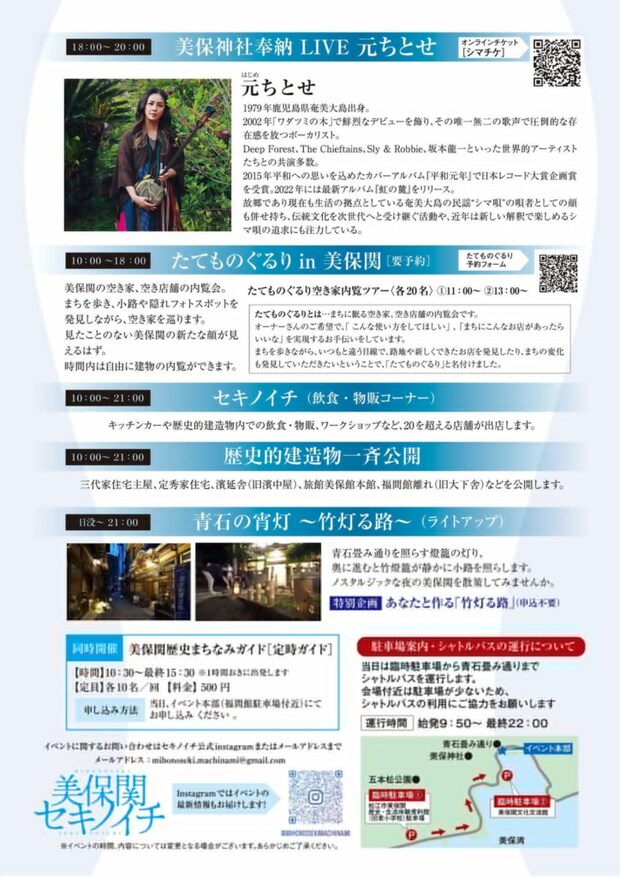 音楽LIVEでは奄美大島の歌姫「元ちとせ」さんが一夜限りの奉納LIVEを行います。
