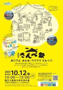 三瓶山周辺地域の展示・体験ブース「SUNSUNビレッジ」や、はたらくクルマの展示、おおだ教育フェスタ、グルメ屋台など、盛りだくさんな内容で開催します。