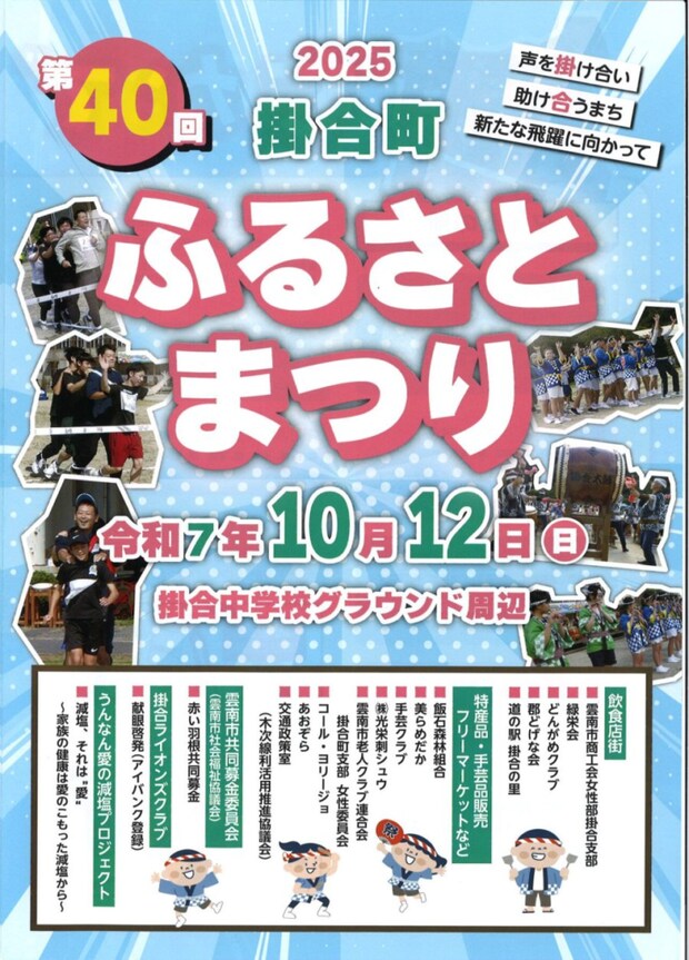 「掛合町ふるさとまつり~声掛け合い、助け合うまち 新たな飛躍に向かって~」が開催されます。