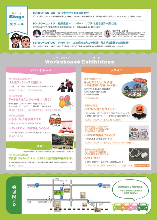米子市文化財団が管理運営する各施設が米子市淀江文化センターに集まり、1日限りのステージイベントやワークショップをお届けします。