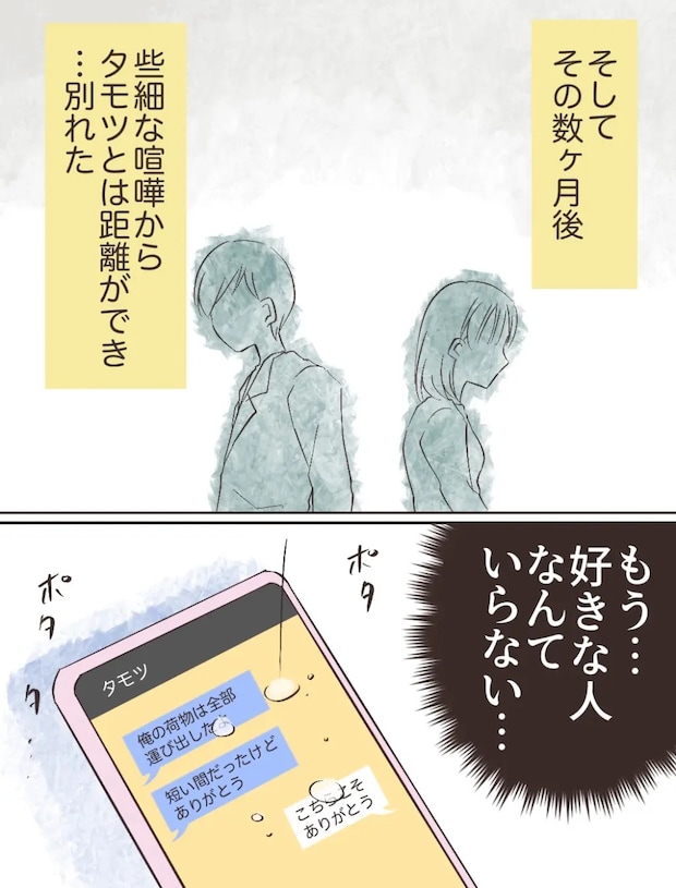 そして、それから数か月が経ったころ、些細なケンカをした私とタモツ。それがきっかけで距離ができ・・分かれることに。