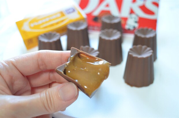 「ダース(ミルク)」と「森永ミルクキャラメル」で作る「とろっとろのキャラメルボンボン」。