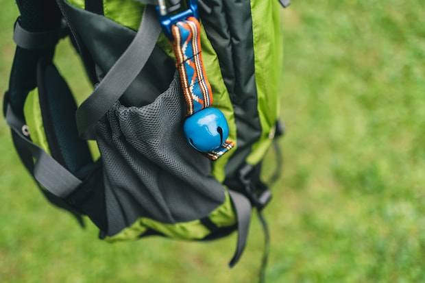 山ではクマ鈴をつける、ラジオをつける、同行者と会話をするなど、音を鳴らしながら進みましょう。渓流釣りでは、川の音で鈴の音が消されてしまうことがあります。1人でじっとしていると鈴が鳴らないので、ラジオなどを併用してください。