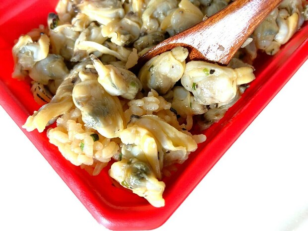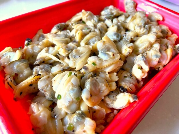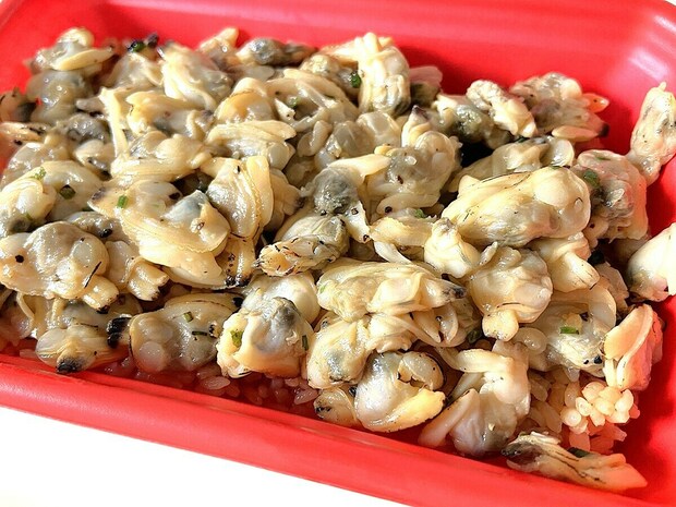 敷き詰められたあさり、ロピア新商品「旨塩あさり飯」