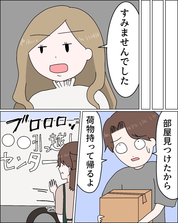 それから数日後、ようやく新しい部屋を見つけたショウたちは、うちにあった荷物をまとめて、正式に出ていきました。ショウは申し訳なさそうな表情をしていましたが、アミちゃんは不満そうに「すみませんでした」と言い捨て、去っていきました。最後まで自分は悪くないという態度に少しモヤッとしましたが、出て行ってくれるなら何でもいいです!