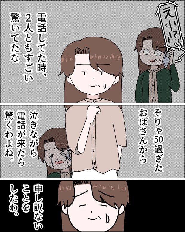 アミちゃんのご両親に助けを求めた時、私はストレスのあまり、電話口で泣き出してしまいました。50を過ぎたおばさんが泣きながら電話してきたことに驚いたのか、アミちゃんのご両親はすごい勢いで謝りながら話を聞いてくれました。ひどく驚かせてしまって、申し訳ないことをしたと思っています。