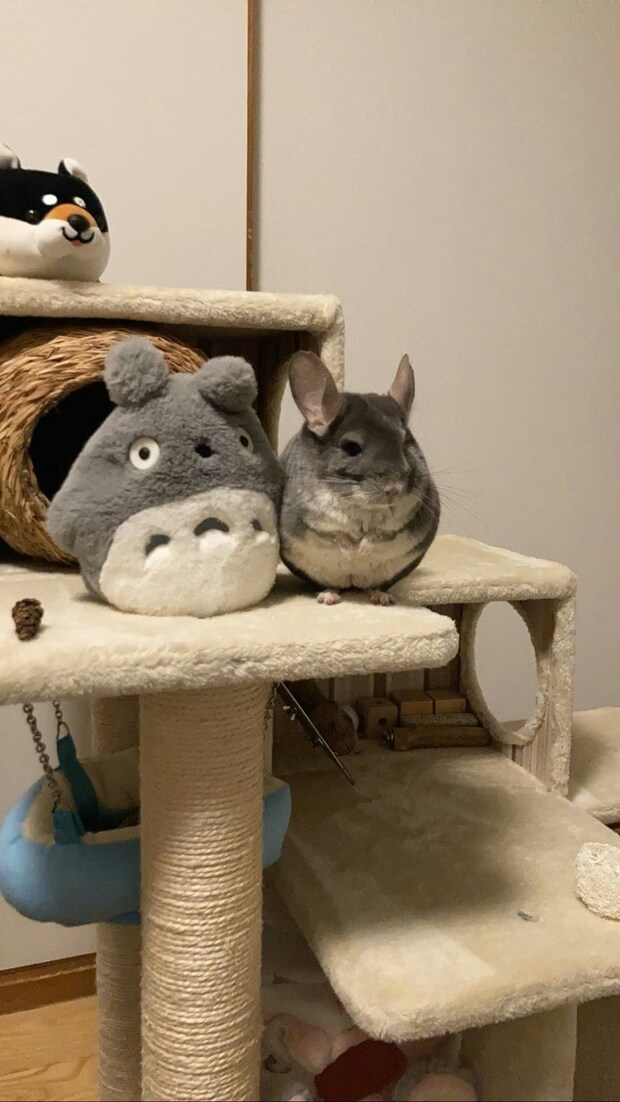 この投稿には「色が完全一致」「癒やしパワー半端ない!」などのリプライが寄せられました。家に帰って、チンチラとトトロが並んでお出迎えしてくれたら、一日の疲れがどこかへ飛んでいきそう。チンチラとの暮らしがうらやましくなるようなすてきな投稿でした。