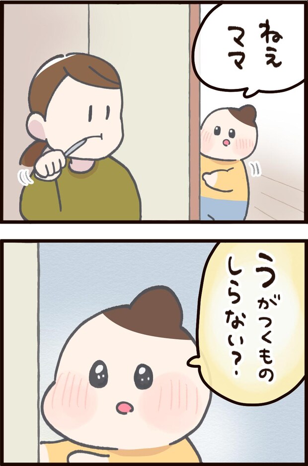こっそり様子を伺うと、娘は夫としりとりをしていたようです。まだ言葉をたくさん知らない娘は、私にこっそり“う”で始まる言葉を聞きにきたことがわかりました。