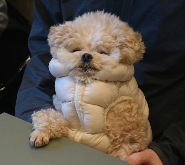 ダウンを着たら睡魔が…愛犬のウトウト顔に2万いいね