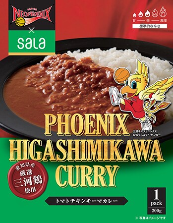 同商品は「東三河の魅力を発信したい」という、三遠ネオフェニックスとSALA両社の想いから誕生した、地元愛が詰まった燃える「赤」のキーマカレーになっている。
