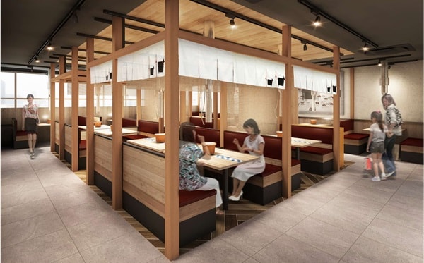 店内は、和の雰囲気を取り入れた内装で居心地が良く、快適な食事空間を演出。センター北駅周辺の3世代家族や大家族にもくつろいでもらえるよう、席間の仕切りを変更することで最大8名対応のテーブルを4つ設置している。