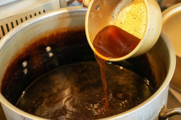 こちらでは創業当時から継ぎ足してきた“秘伝のスープ”を使用していて、一般的なラーメン店のように醤油タレをスープで割って提供するのではなく、この煮詰めたスープをそのままラーメンのスープとして供しているるんです!