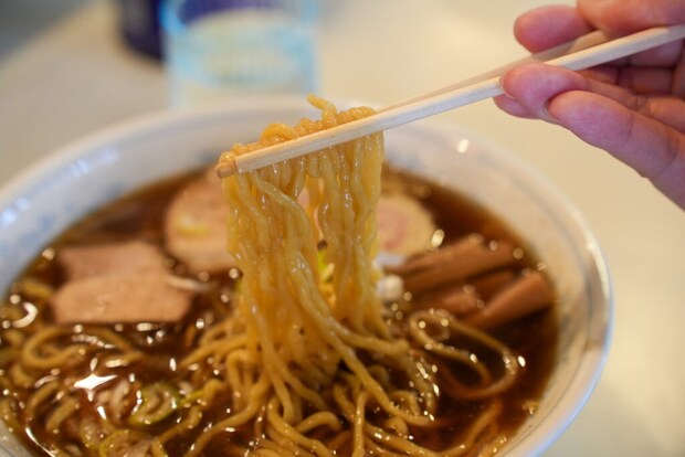 麺は中太ちぢれ麺でスープがよく絡みます。