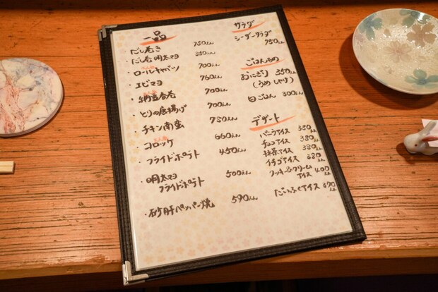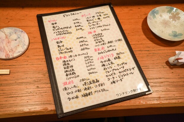 (※お通し代・席料は別途。季節によって変動あり。500円~1000円前後)