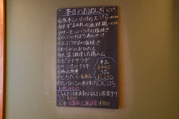 その日のおばんざいは、黒板にズラリと書かれています。