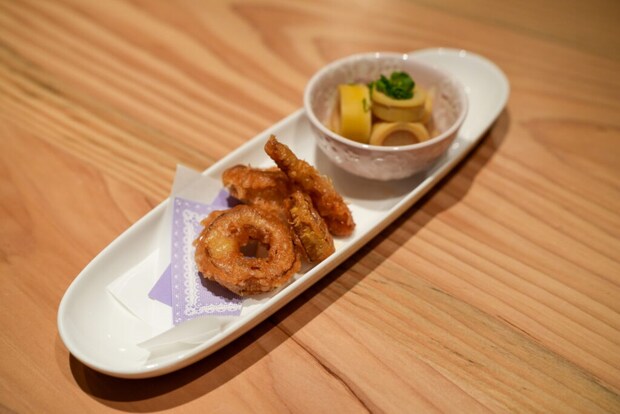 煮つけはやさしい味つけで、たけのこの香りを存分に感じる仕上がり。天ぷらはサクッと軽く、どちらもお酒が止まらない。煮物と揚げ物、両方味わえる贅沢セットです!