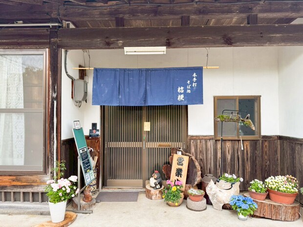 大山のふもと、自然豊かな山あいにたたずむ「そば処 桔梗」。
