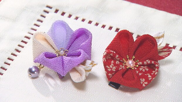 人気なのは江戸時代から技法を受け継ぐ「つまみ細工」。このお店では、髪飾りや帯留めの製作体験もできるとのこと!