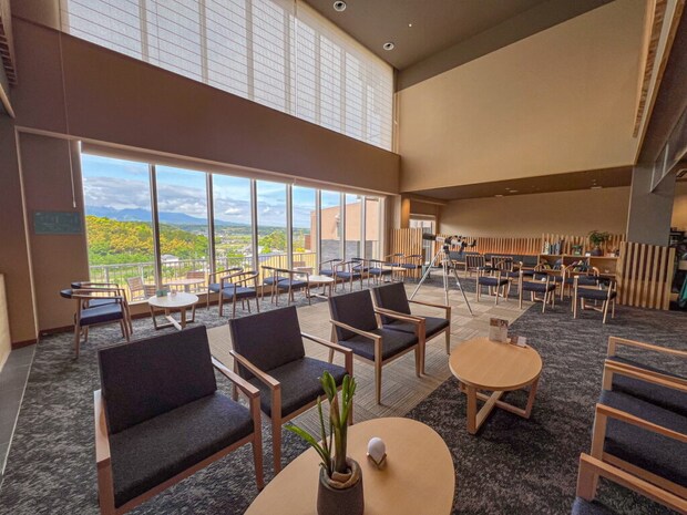 ホテルに入ると、自然をたっぷり感じられる、広々としたスタイリッシュなロビー。