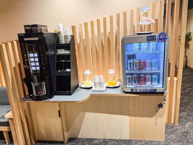 ウェルカムドリンクコーナーがあり、観光をして喉も乾いていたので早速一息つかせていただきました。