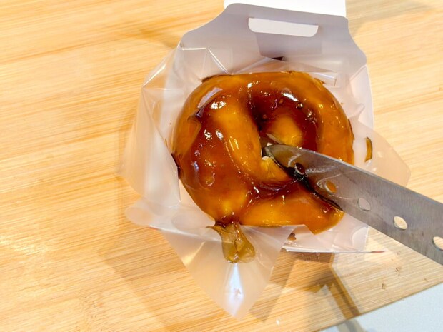 包丁で切ろうとしたのですが、この通りむにゅっとなってしまうくらいもっちゅもちゅなのです!