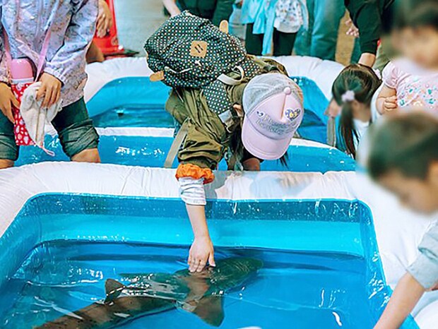 お子さまに人気のイベント サメタッチや魚介のつかみ取りも
