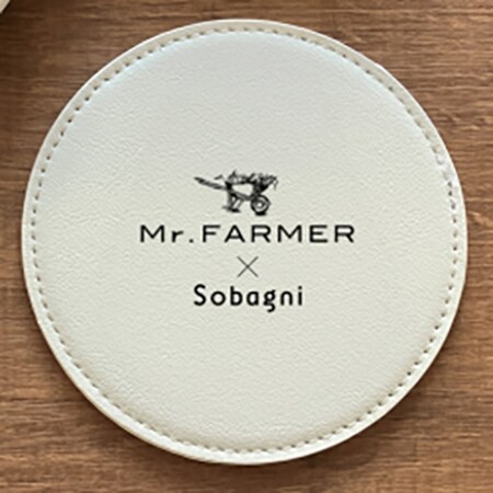 更にコラボ期間中は、Mr.FARMERのロゴをあしらった「Sobagni」のカップホルダーやコースターを店頭にて展示・販売。