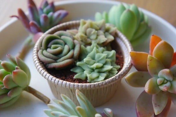 一つは、プラントケーキ「BOTACA(ボタカ)」。多肉植物そっくりの見た目と繊細な細工が「本当に食べられるの?」と話題に。白あん・マスカルポーネ・コーヒースポンジで仕立てたティラミス風スイーツだ。