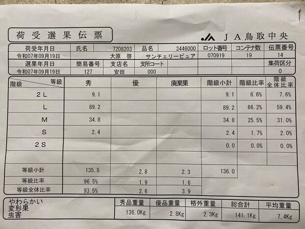 特にやりがいを感じる瞬間は、JAから返ってくる選果表を受け取るとき。