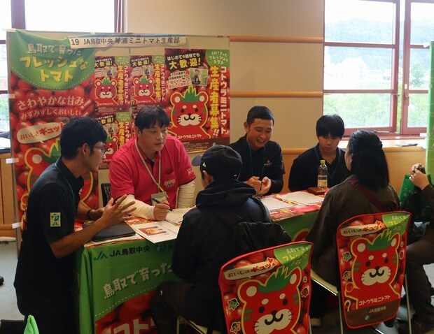 就農相談ブースでは、鳥取県内の産地や市町村が集まり、就農について気になることを直接相談できます。