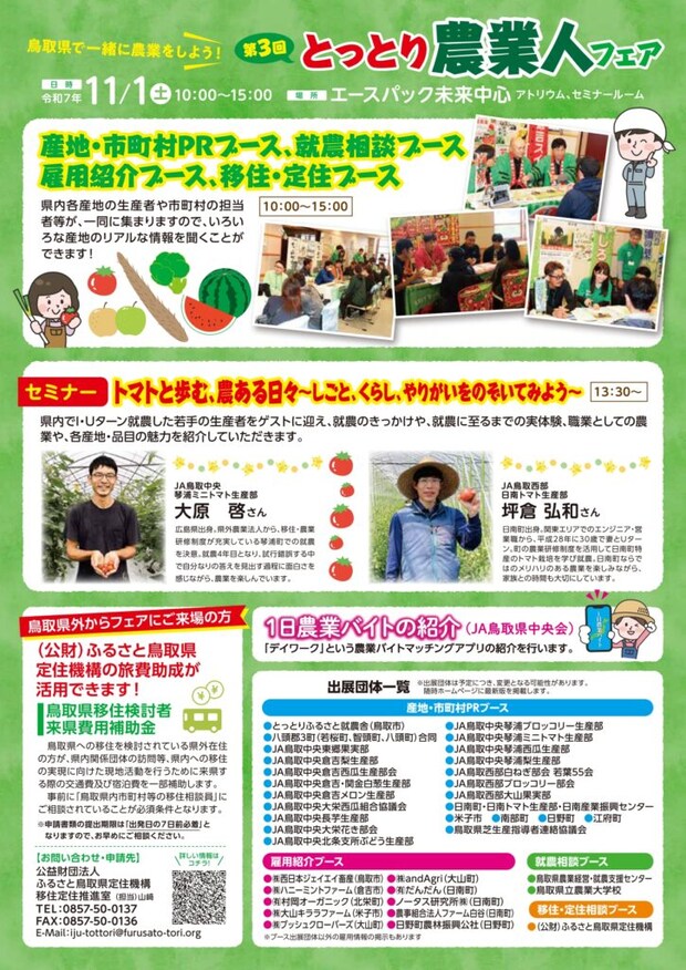 大原さんも出席されるイベントが「第3回とっとり農業人フェア」。