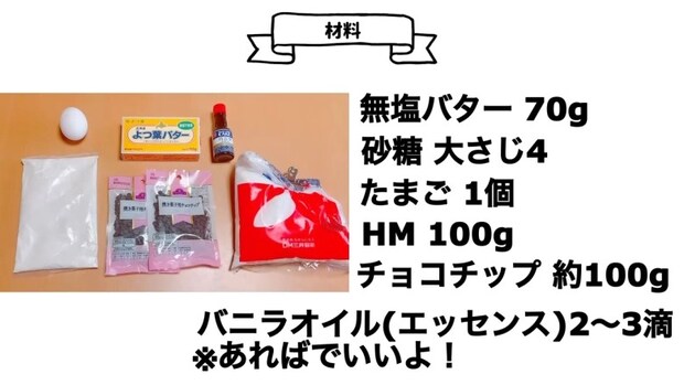 - チョコチップ 約100g ※板チョコで代用可