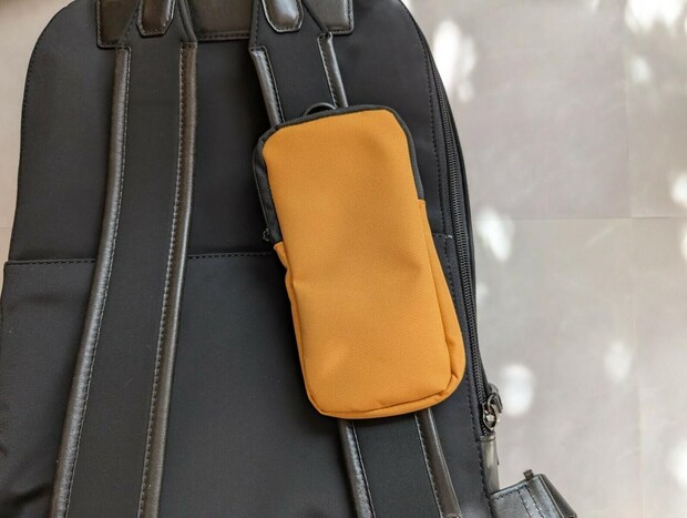 アウトドアや旅行好きにおすすめなのが、こちらのバックパックに付けられるストラップポーチです。