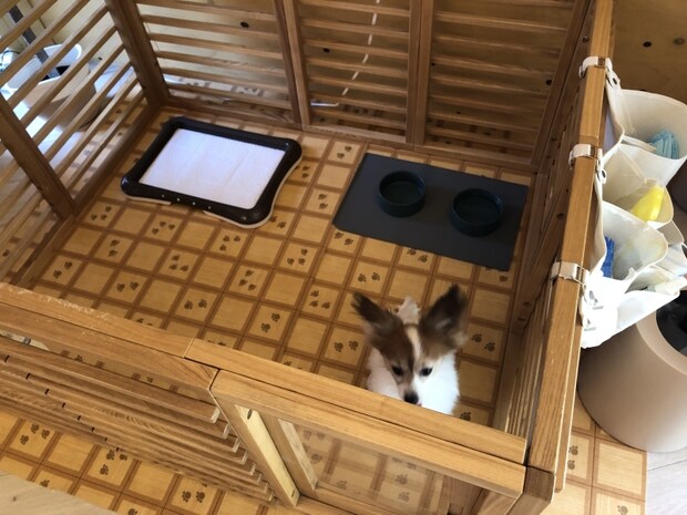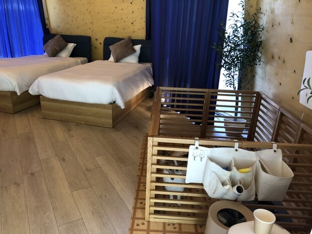 また、ベッドにあげるのは不安というワンちゃんのために、ゲージもあります。ペットシート、トイレトレー、餌皿、コロコロ、消臭スプレー、犬用ウェットティッシュなど、ワンちゃんと一緒のステイに役に立つ備品も一通り揃っていて、ありがたいです。