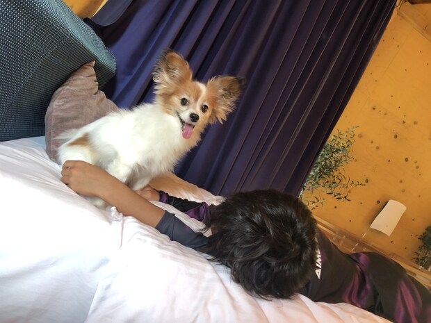 ワンちゃんと一緒に、ベッドの上でくつろげるのも嬉しいですね。
